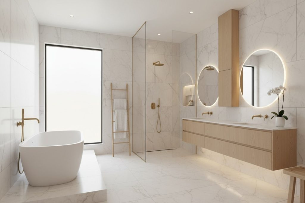 Whether you’re envisioning a luxury spa retreat, a minimalist modern space, or a timeless classic look, we tailor every design element to your needs. We help you choose materials that not only elevate the look but also perform well in humid environments — from moisture-resistant cabinetry and tiles to durable stone countertops.