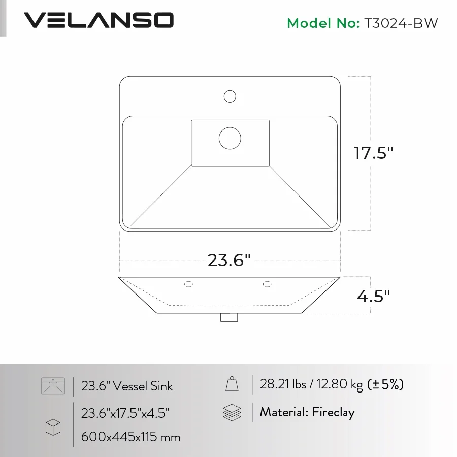 The Desaza Belaro 23.6 (T3024-BW) is a premium fireclay vessel sink offering elegant form and functional durability. With its refined Bright White finish, fireclay construction, and sophisticated above-counter installation, it brings both style and performance to the heart of your bathroom.