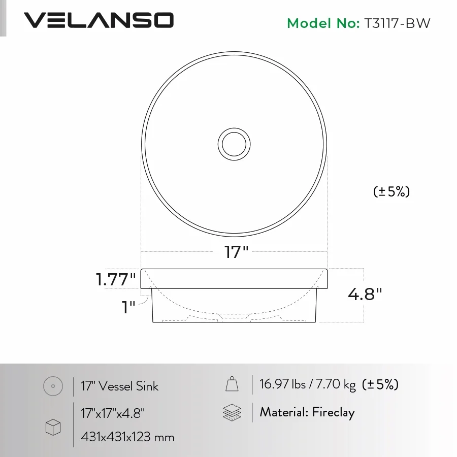 - Elegant rectangular vessel sink design sized approximately 23.6″ × 17.5″ × 4.5″.