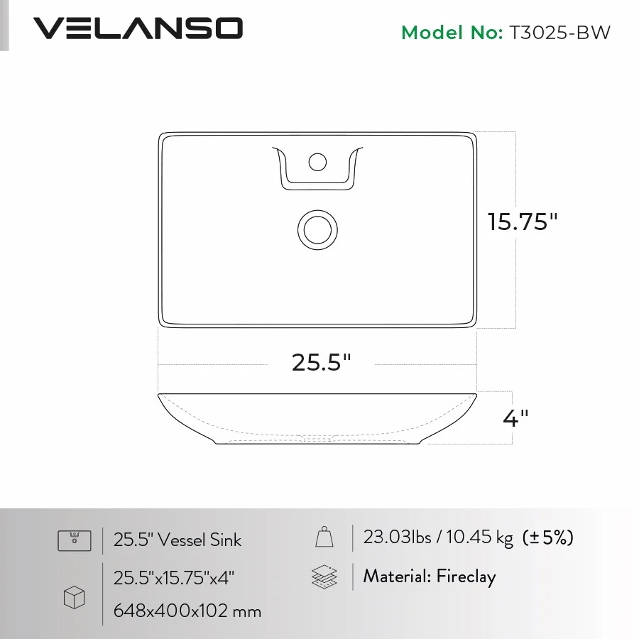 - Above-counter vessel sink design measuring approximately 25.5″ width, offering a bold, sculptural presence.