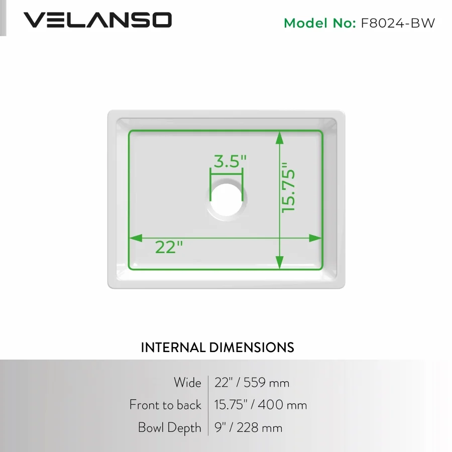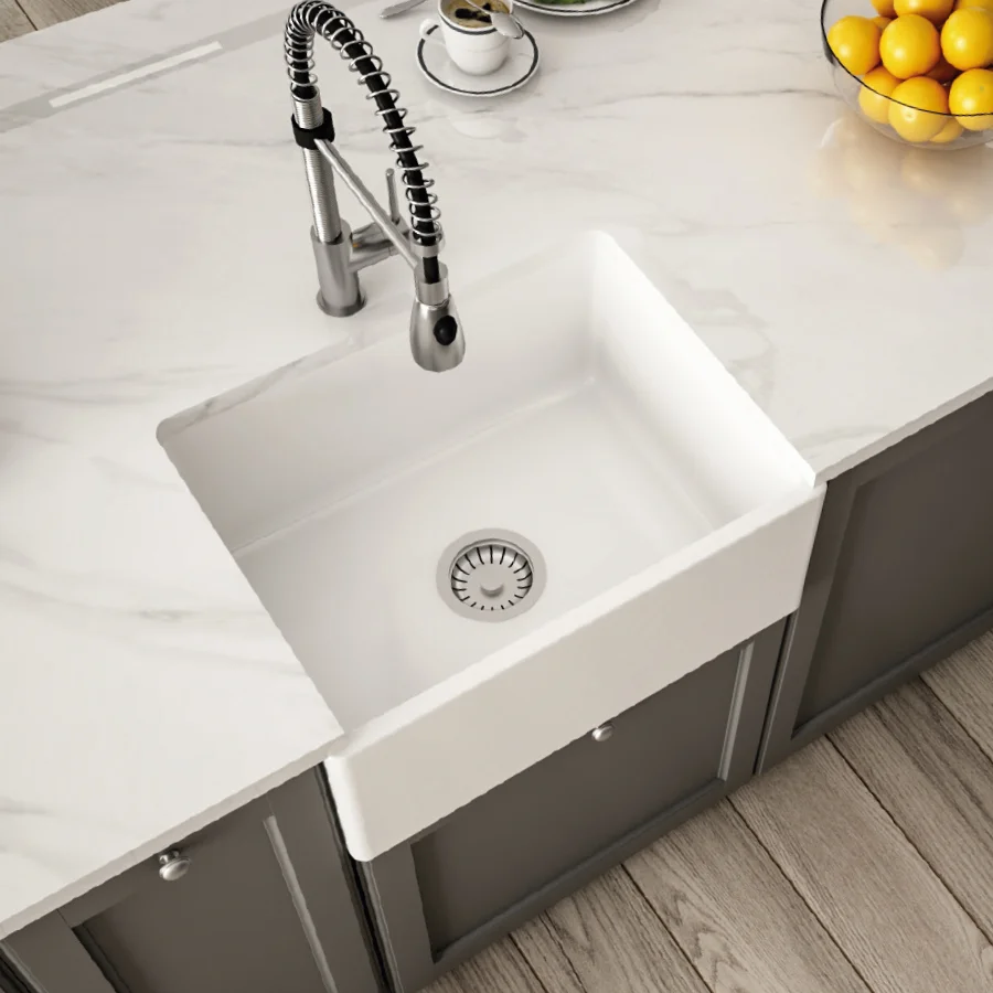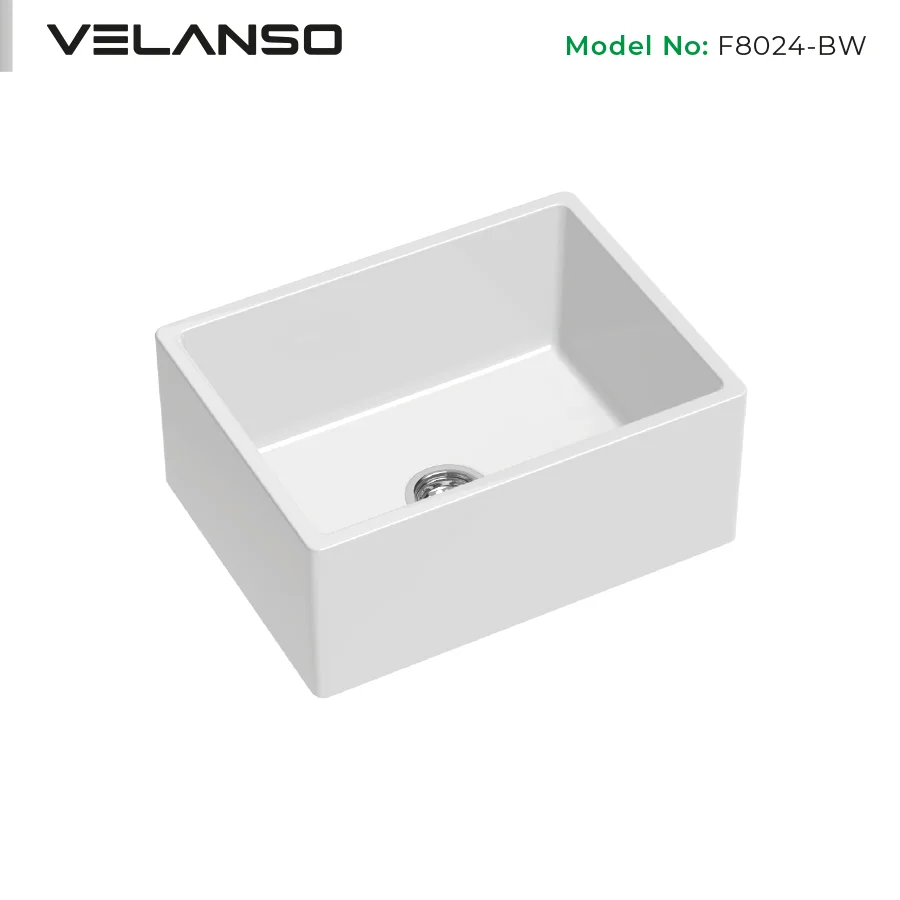 - Bright White fireclay surface with smooth glazing for a crisp, hygienic finish.