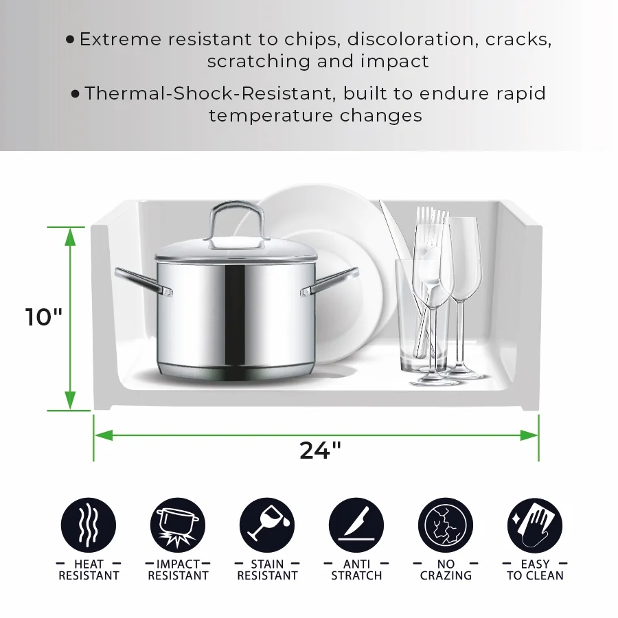 - Heat-, stain- and scratch-resistant fireclay ensures reliable daily performance.