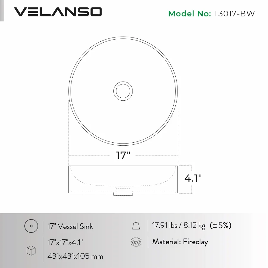 - Elegant circular above-counter vessel design with an approximate 17″ diameter — ideal for adding a statement piece to the bathroom.
